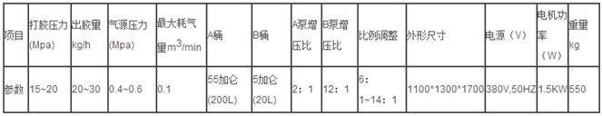 STJ02型雙組份打膠機主要由A膠泵、B膠泵、配比泵、升降系統、調比結構、混膠系統、氣動系統和電氣系統組成。